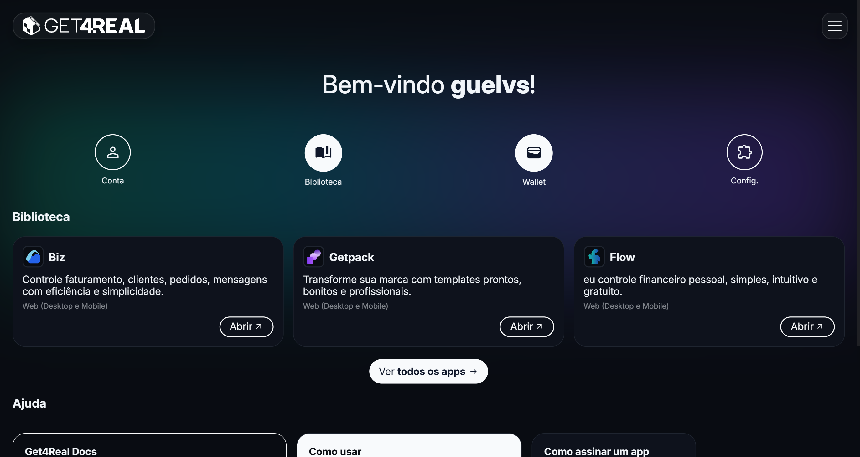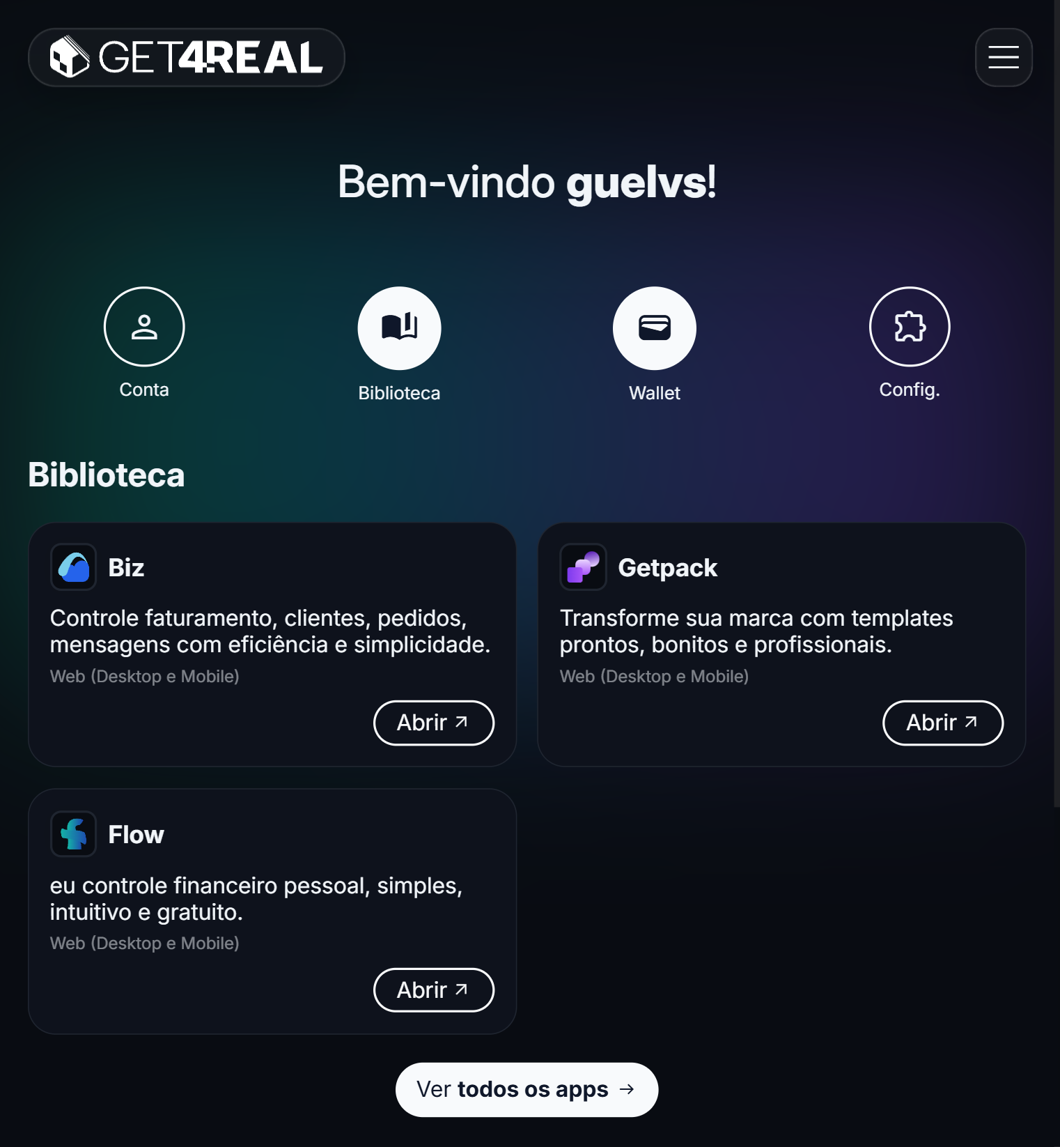 Acesse e gerencie seus aplicativos Get4Real em um só lugar, com login único e experiência consistente.